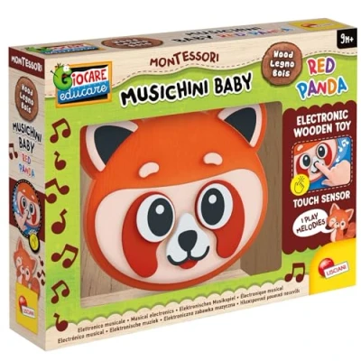 Lisciani MONTESSORI Baby WOOD Music: Red Panda Interactive Musical Wooden Toy for From 9 Months and Luminous Awakening Electronic Promotes Sensory Discovery