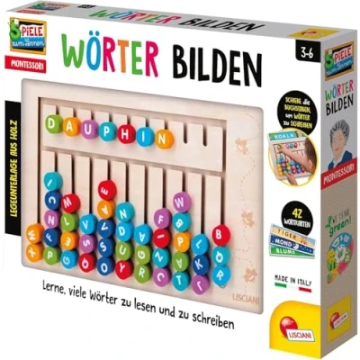 Learning letters with wooden board: with the Montessori wooden board and colourful letters, children aged 3 and over discover the alphabet playfully - promotes letter understanding, word recognition, concentration and motor coordination in everyday life. 42 learning cards for word building: the enclosed cards show child-friendly motifs for recreating with letters - trains visual perception, language development, fine motor skills and makes it easier to get started with reading and writing. PROMOTES SELF LEARNING: By pushing and placing the letters independently, children develop confidence, logical thinking and creative solutions - inspired by Montessori education. ABC learning game preschool: alphabet and simple words are made understandable by active participation - suitable for preschool language promotion, writing exercises and early learning development from 3 years. LEARN THROUGH TOUCH: Wooden toy with high-quality composite and wood letters - designed for durable, safe and tactile learning at home or in kindergarten - recommended for children aged 3 to 6 years., Manufacturer: Lisciani