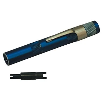 Removes and installs valve cores and valve core caps Fits both large and small valve cores Use the reverse end to remove and install valve core caps The long tool handle will access inside dual wheels The lightweight aluminum body is equipped with a pocket clip