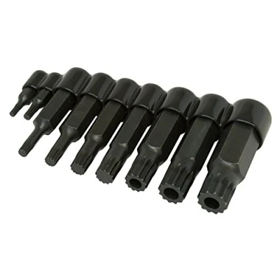 For head bolts, brake caliper bolts, door handle screws, axle bolts and other applications; the 4 and 5 millimeter bits have 5/16" hex drive The 14 and 16 millimeter bits have 5/8" hex drive The three largest sizes are designed to work on tamper-proof applications The 18 millimeter bit has a 3/4" hex drive The 6, 8, 10 and 12 millimeter bits have 1/2" hex drive