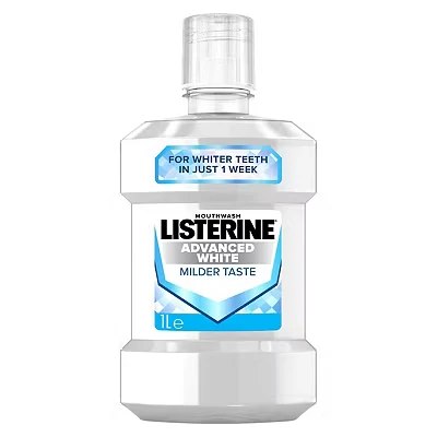 Listerine Advanced White Milder Taste (Zero Alcohol) Mouthwash (1000ml), Fluoride to Whiten and Protect from New Stains While Remineralising Strengthening Teeth
