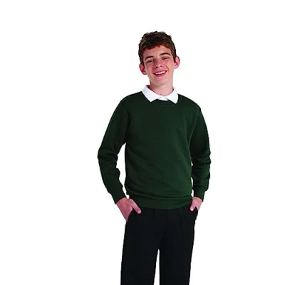 Listers Schoolwear Boys Girls Unisex School Crew Neck Jumper Round Fleece Sweatshirt Uniform Ages 3 16 Years Bottle Green