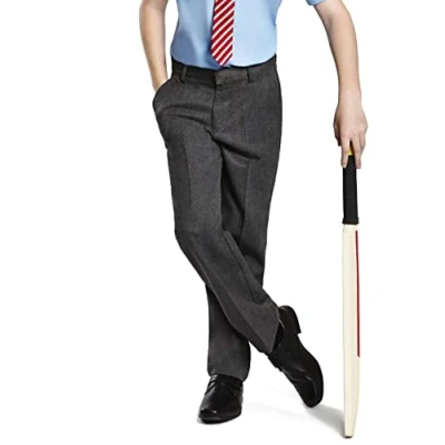 Pull up Trousers make dressing for school immeasurably easier and, with sizes ranging up to age 16, they are available to all young scholars. The regular fit offers ultimate comfort with plenty of room for movement and the label has been moved to the pocket, so say goodbye to itchy classroom fidgeting. No Hooks or Zips! Ages 2 3 4 5 6 7 8 9 10 11 12 13 Black - Grey - Navy Teflon Stain resistant material