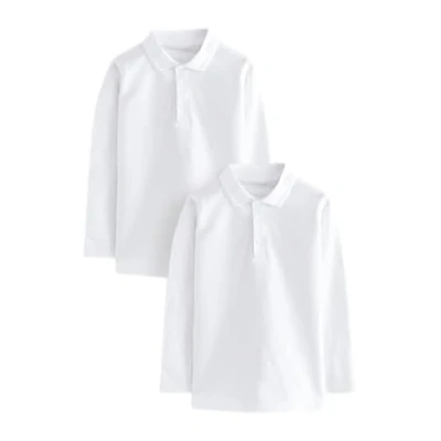 Listers Schoolwear (Pack of 2 Age 3 16 White 100% Cotton School Plain Polo Shirt Long Sleeve Childrens Boys Girls P.E.