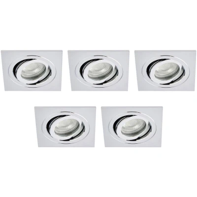LITECRAFT 5 Pack of IP65 Rated Tiltable Square Recessed Spotlight Downlighter (Chrome, 5)