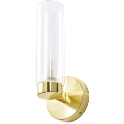 Introduce ambience into your home with the Agatha 1 Arm Bathroom Wall Light in Satin Brass. This satin brass wall light beautifully diffuses a subtle glow throughout your space to increase a relaxing atmosphere. With a minimalist design and an IP44 rating, this bathroom wall light would be ideal when paired on either side of a mirror. Product Type: Wall Light Bulbs Required: 1 (Not Included) Bulb Type: G9 Max Bulb Wattage: 3 Watt, Max Bulb Voltage: 240 Volt Light Source: LED Height: 26.7 cm approx. Width: 12 cm approx. Length: 11 cm approx. Material: Metal, Glass Colour: Satin Brass Technical Information IP44 Rated for safe use in bathrooms