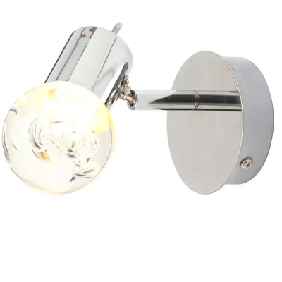 Enhance your bathroom lighting with the Ayston LED Single Bathroom Wall or Ceiling Spotlight in Chrome, a sleek and versatile choice for modern interiors. Designed with integrated LED technology, it delivers bright, energy-efficient illumination through its globe shaped bubble glass shade while maintaining a compact, stylish profile. Complete with a polished chrome finish and adjustable head, this IP44 rated spotlight offers flexibility for targeted lighting wherever you need it most. Product Type: Wall or Ceiling Spotlight Bulbs Required: 1 (Integrated) Bulb Type: Integrated LED (Non Replaceable) Max Bulb Wattage: 5 Watt Max Bub Voltage: 240 Volt Light Source: LED Height: 15.5 cm approx. Width: 9 cm approx. Prodjection: 14 cm approx. Lumen: 350 lm Colour Temperature: 3000K Warm White Average Lifespan: 20,000 hrs EU Energy Efficiency Rating: G Material: Metal, Glass Colour: Polished Chrome Technical Information IP44 Rated for safe use in bathrooms Weight: 0.7 kg