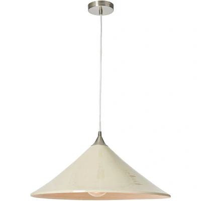 General description Inspire a Scandinavian aesthetic in your home with the Bamboo Ceiling Pendant 1 Light with Large Cream Shade in Satin Nickel. This classic ceiling pendant combines timeless aesthetics with an inviting ambiance. Featuring a versatile cream-colored lampshade, this ceiling light complements various interior design themes. Technical specifications Product Type: Ceiling Pendant Bulbs Required: 1 (Not Included) Bulb Type: E27 Edison Screw Max Bulb Wattage: 42 Watt Max Bulb Voltage: 240 Volt Height: 117 cm approx. Diameter: 50 cm approx. Drop: Max: 117 cm, Min: 30 cm approx. Material: Metal, Bamboo Colour: Cream, Natural, Satin Nickel Weight: 1.50 kg