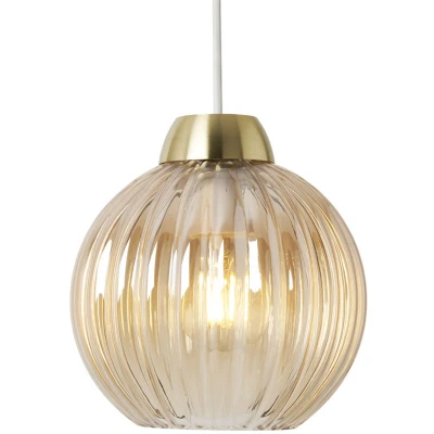 Give your room an instant refresh with the Clara Ribbed Glass Easy to Fit Shade. This stunning ceiling light shade features brass accents and champagne tinted ribbed glass that softly diffuses the light, giving a warm glow to your living spaces. Product Type: Easy Fit Shade Bulbs Required: 1 (Not Included) Bulb Type: Simply attaches to existing fitting Max Bulb Wattage: 10 Watt Light Source: Non Electric Height: 18.8 cm approx. Diameter: 18 cm approx. Material: Metal, Glass Colour: Satin Brass, Champagne Technical Information Weight: 0.7 kg
