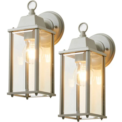 LITECRAFT Colone Wall Light Bevelled Glass Outdoor IP23 Lantern in Dove Grey 2 Pack