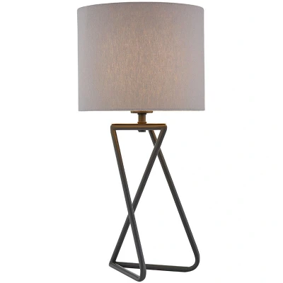 LITECRAFT CRIS Table Lamp E27 Base with Grey Fabric Shade Pewter
