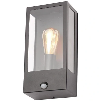 LITECRAFT Edgworth Wall Light Outdoor Box Lantern with PIR Motion Sensor Black