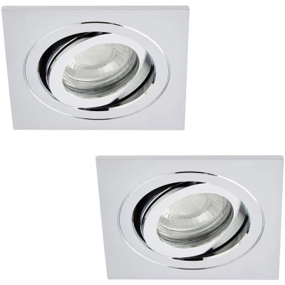 LITECRAFT IP65 Rated Tiltable Square Recessed Spotlight Downlighter (Chrome, Pack of 2)