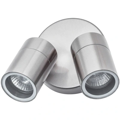 LITECRAFT Kenn Classic Style Twin Adjustable Outdoor 2 Light Wall Spotlight in Stainless Steel Garden Lighting