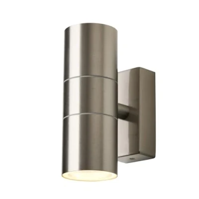 AmazonProduct Type: Outdoor Wall Light, Bulbs Required: 2 (Not Included) Bulb Type: GU10, Max Bulb Wattage: 8 Watt, Max Bulb Voltage: 240 Volt Light Source: LED, Height: 16 cm approx., Width: 6 cm approx., Projection: 11 cm approx. Wall Plate Height: 8.5 cm approx., Wall Plate Width: 4.5 cm approx., Material: Metal, Glass Colour: Stainless Steel, IP65 Rated for safe use outdoors, Weight: 0.66 kg, Guarantee: 2 Year