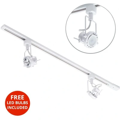 General description This 1 Metre Track Light Kit features 2 Greenwich Heads and LED Bulbs in White, perfect for incorporating contemporary lighting into your home. The kit includes two energy-efficient LED bulbs, making it an excellent choice for those looking to reduce energy consumption. With its crisp white finish, this track light seamlessly blends into white ceilings, creating a subtle yet effective lighting ambiance. Technical specifications Product Type: Track Light Spot Head Colours: White Light Bulb Type: GU10 Bulbs Required: 2 (Included) Bulb Wattage: 8 Watt Length: 1 Metre Width: 3.3 cm approx. Material: Metal Compatibility and accessories Compatible with LED or halogen bulbs (GU10) Includes: 2x heads, 2x LED Bulbs, 1x 1 metre track Usage This track light kit is ideal for kitchens, dining rooms, hallways, and office spaces. You can customize the position and number of spot heads for practical, directional lighting. Additionally, you can create straight or L-shaped