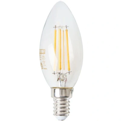 General description The Litecraft Light Bulb is a 4.5 W E14 Small Edison Screw candle-shaped LED bulb that emits a warm white light, perfect for creating a cozy atmosphere in any room. Technical specifications Product Type: Light Bulb Cap Type: E14 Small Edison Screw Shape: Candle Wattage: 4.5 Watt Voltage: 240 Volt Light Source: LED Dimmable: No Lumen: 470 lm Colour Temperature: 2700 K (Warm White) Energy Efficiency Rating: F Average Lifespan: 15,000 Hours Beam Angle: 360° Length: 9.7 cm approx. Diameter: 3.5 cm approx. Material: Metal, Glass Colour: Clear Equivalent: 40 Watt (Incandescent)