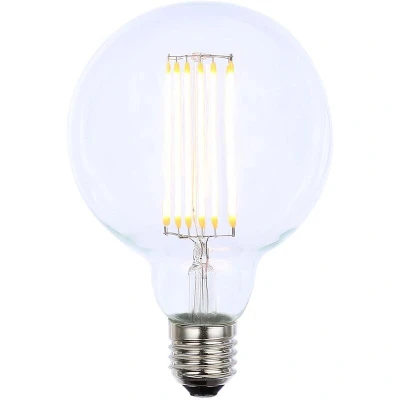 General description This E27 Edison Screw Cap 6 Watt Filament Globe LED bulb in Clear is designed to deliver both efficiency and style. With its clear filament, this LED bulb offers bright, consistent lighting, making it an excellent choice for any room in your home. Its classic design ensures it complements a wide range of interior styles. Technical specifications Product Type: Light Bulb Cap Type: E27 Edison Screw Shape: Globe Wattage: 6 Watt Voltage: 240 Volt Light Source: LED Lumen: 500 lm Colour Temperature: 2200 K Warm White Energy Efficiency Rating: G Average Lifespan: 15,000 hrs Length: 14 cm approx. Diameter: 9.5 cm approx. Material: Glass Colour: Clear Weight: 0.24 kg