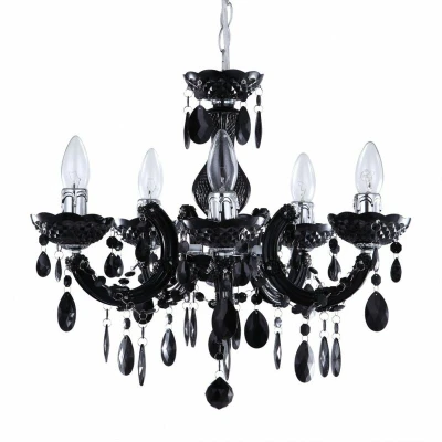 General description Add dramatic flair to your home with the Marie Therese Chandelier in black, featuring five arms adorned with crystal-effect detailing. This bold chandelier combines traditional design with a modern colour palette, making it perfect for contemporary interiors. Its luxurious aesthetic creates a captivating centrepiece for dining rooms or living spaces. Technical specifications Product Type: Chandelier Bulbs Required: 5 (Not Included) Bulb Type: E14 Small Edison Screw Max Bulb Wattage: 6 Watt Max Bulb Voltage: 240 Volt Light Source: LED Height: 145 cm approx. Diameter: 45 cm approx. Ceiling Cap Diameter: 10.5 cm approx. Drop: Max: 145 cm, Min: 47 cm approx. Material: Metal, Acrylic Colour: Black Dimmable: Yes (With appropriate bulb & switch) Weight: 2.56 kg