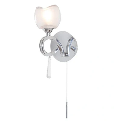 AmazonProduct Type: Wall Light, Bulbs Required: 1 (Not Included) Bulb Type: G9, Max Bulb Wattage: 6 Watt, Max Bulb Voltage: 240 Volt Light Source: LED, Height: 16 cm approx., Width: 13 cm approx. Projection: 13 cm approx., Material: Metal, Glass Colour: Polished Chrome, Features a pull cord switch Dimmable: Yes (With Appropriate bulb & switch)