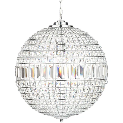 LITECRAFT Miley Large Globe Ceiling Pendant E27 1 Light Indoor Fitting Chrome