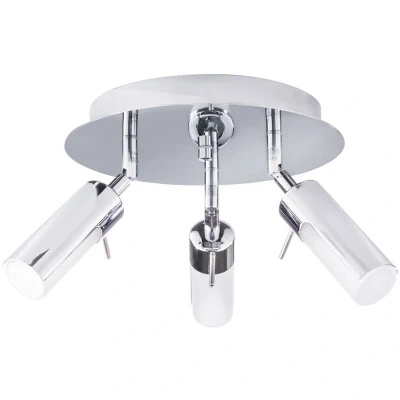 General description Add a touch of elegance to your bathroom with the Palma 3-Arm Spotlight Plate in chrome, featuring frosted glass shades for a soft and diffused light. This stylish ceiling light fitting has adjustable heads, allowing you to direct light exactly where it's needed. Ideal for modern bathrooms, it combines practicality with a sleek, contemporary design. Technical specifications Product Type: Spotlight Bar Bulbs Required: 3 (Not Included) Bulb Type: G9 Max Bulb Wattage: 25 Watt Bulb Voltage: 240 Volts Height: 8.5 cm approx Diameter: 24 cm approx Drop: Max: 24 cm approx Material: Metal Colour: Polished Chrome Dimmable: Yes (With appropriate bulb & switch) IP44 Rated for safe use in bathroom