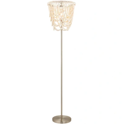 Litecraft Pilli Floor Lamp Base With Wooden Beaded Shade Satin Nickel