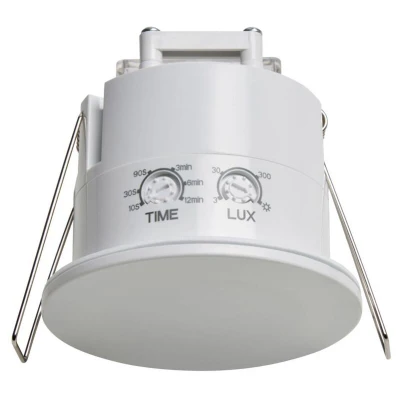 General description Enhance your lighting system with the discreet Recessed Real Presence Sensor in white. Designed for recess mounting, this advanced sensor detects motion accurately for hands-free convenience. Ideal for both residential and commercial spaces, it’s a smart addition to any automated setup. Technical specifications Product Type: Microwave Motion Sensor Height: 6.6 cm approx. Diameter: 7.5 cm approx. Max Load Wattage: 1200 Watt Time Delay: 10s - 12 mins (Adjustable) Max Voltage: 240 Volt Material: Polycarbonate Colour: White Weight: 0.1 kg IP Rating: IP54 Rated for safe use outdoors