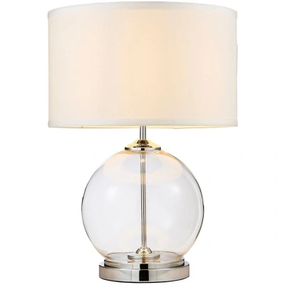 LITECRAFT Rhonda Table Lamp Large Globe Glass Base with Drum Shade Chrome