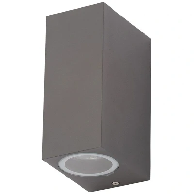 General description Improve the atmosphere in your garden with the Richmond Outdoor 2 Light Square Modern Style Up and Down Wall Light in Anthracite. Ideal for urban homes, this wall light boasts a contemporary design, finished in a sleek anthracite colour. Enjoy this outdoor light all year round as it offers an IP44 rating, making it suitable for outdoor use. Technical specifications Product Type: Outdoor Wall Light Bulbs Required: 2 (Not Included) Bulb Type: GU10 Max Bulb Wattage: 8 Watt Max Bulb Voltage: 240 Volt Light Source: LED Height: 15 cm approx. Width: 7 cm approx. Projection: 9.2 cm approx. Material: Metal, Glass Colour: Anthracite Weight: 0.38 kg Other information IP44 rated for safe outdoor use.