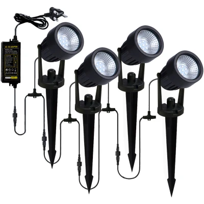 LITECRAFT Sitka 4 x 3 Watt LED Outdoor Garden Spike Kit with Photocell Sensor Black