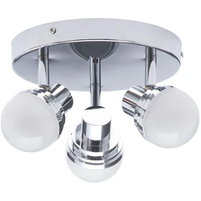 General description Brighten your interior with the Skipton Bathroom IP44 LED Spotlight Plate featuring 3 adjustable mini globe heads in polished chrome. With adjustable spotlight heads, you can ensure each corner of your bathroom is sufficiently illuminated. This ceiling light fitting offers a sleek look that enhances a modern aesthetic in your bathroom. Technical specifications Product Type: Spotlight Plate Bulbs Required: 3 (Integrated) Light Bulb Type: Integrated LED (Non Replaceable) Max Bulb Wattage: 15 Watt Max Bulb Voltage: 240 Volt Light Source: LED Height: 14 cm approx. Diameter: 28 cm approx. Drop: 14 cm approx. Energy Efficiency Rating: A++ Average Lifespan: 20,000 hrs Lumen: 960 lm Colour Temperature: 3000 k Warm White Material: Metal, Glass Colour: Polished Chrome Weight: 1.08 kg IP44 Rated for safe use in bathroom