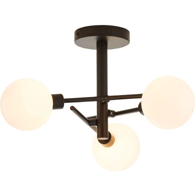 LITECRAFT Supa Semi Flush Ceiling 3 Light with White Glass Ball Shades Black