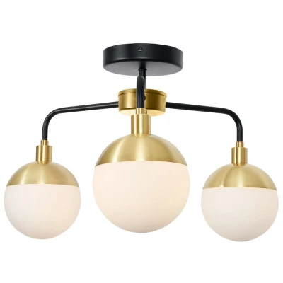 LITECRAFT Sydney Ceiling Light Bathroom IP44 Semi Flush Black and Brass (3 Light)