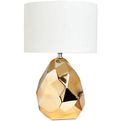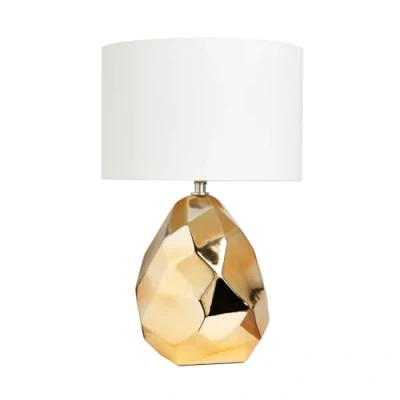 General description The Litecraft Table Lamp features a unique nugget shape with a natural drum shade, adding a touch of elegance to any space. Its gold finish complements various interior styles, making it a versatile lighting solution. Technical specifications Product Type: Table Lamp Bulbs Required: 1 (Not Included) Bulb Type: E14 Small Edison Screw Max Bulb Wattage: 6 Watt Max Bulb Voltage: 240 Volt Light Source: LED Height: 43 cm approx. Diameter: 28 cm approx. Base Diameter: 16 cm approx. Shade Diameter: 28 cm approx. Material: Metal, Fabric Colour: Gold, Natural Other information Features an In-Line On/Off switch