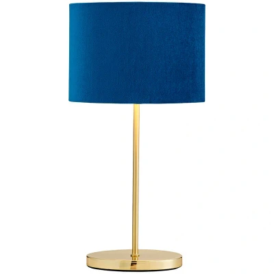 LITECRAFT Table Lamp Stick Base with Blue Oval Velvet Shade Satin Brass