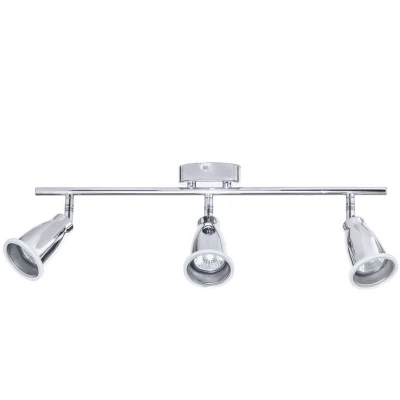 General description Practical and stylish bathroom lighting for your home, the Taurus 3 Light Ceiling Spotlight Bar is IP44 rated, meaning it is sufficiently water resistant for use in the bathroom. This ceiling spotlight comes in a contemporary polished chrome finish and features 3 adjustable spotlight heads, providing a modern aesthetic and conveniently lighting any surfaces or countertops. Technical specifications Product Type: Spotlight Bar Bulbs Required: 3 (Not Included) Bulb Type: GU10 Max Bulb Wattage: 8 Watt Max Bulb Voltage: 240 Volt Height: 17 cm approx. Width: 9 cm approx. Length: 50 cm approx. Drop: 17 cm approx. Material: Metal, Glass Colour: Polished Chrome IP44 Rated for safe use in bathroom Dimmable: Yes (With appropriate bulb & switch)