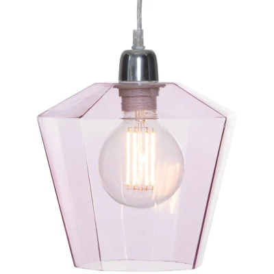 General description The Tethys Glass Easy to Fit Pendant Shade in Pink is an ideal addition to colorful homes. Easy-fit shades are a quick solution to home decor transformations. The pink-tinted glass shade diffuses the light around the room, creating a beautiful wash of light in your home. Technical specifications Product Type: Light Shade Bulbs Required: 1 (Not Included) Bulb Type: Simply attaches to existing fitting Max Bulb Wattage: 10 Watt Height: 20 cm approx. Diameter: 22.5 cm approx. Material: Metal, Glass Weight: 1.32 kg