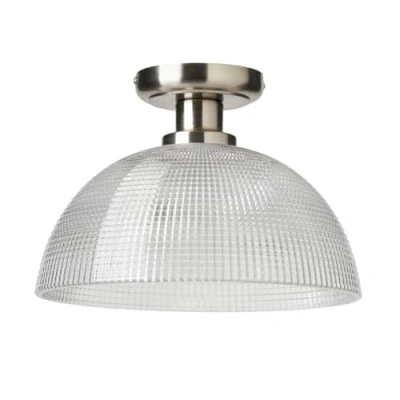 Litecraft Ulga Ceiling Light Ribbed Glass Shaded Flush Mounted Satin Nickel