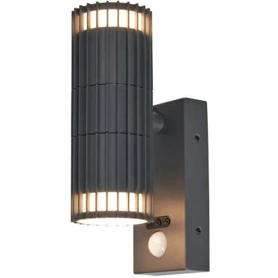 LITECRAFT Veda Wall Light Outdoor Ribbed Up & Down IP65 Rated Fitting with PIR Motion Sensor Anthracite