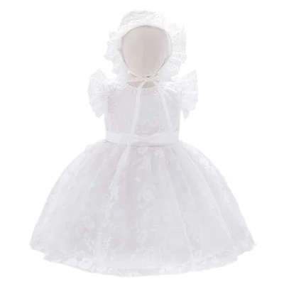This gorgeous infant baby girls christening dress baptism outfit is featured with rich embroideries details. Matching an elegant bonnet hat with lace ruffles. A great present for your little one, nieces, or granddaughter. Fully lined white gown, a beautiful tulle layer on top with delicate floral embroideries. Sleeveless design with lace ruffles. 3 layers of skirt for added fullness. Cotton underskirt with netting underneath for comfort wear. Tied sash at back to ensure a perfect fit. Size for infants and babies girls, age 3-6 months, 6-12 months, 12-18 months and 18-24 months. Please measure your child's current clothing and refer to the size chart to choose a proper size for best fit. Suitable for many special occasions. Christening, Baptismal, church, ceremony, communion, dedication, blessing, catholic events, birthday, Easter, wedding, flower girls, bridesmaid, flower girls, Thanksgiving, Pentecost, Christmas or other religious activities. Pull on style with concealed zipper closure at back for easy dressing. Made of 35% viscose and 65% polyester. Soft and breathable. Quality materials for long time wearing. Please wash by hand gently.
