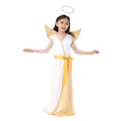 Adorable and sacred angel costume set for toddler girls and little kids! Comes with a pair of wings and angel halo hair hoop to create a heavenly look. Perfect for dress up parties, carolling or stage performance! A white robe with mesh long sleeve and overlay. Shiny gold trim on round neckline and sleeve. Embellished with a gold waistband and yellow underskirt. Detachable angel wings with Velcro tape stick on back. Finish the angelic look with a holy halo hair hoop. Made of 100% polyester. Pullover dress with stretchy materials for easy dressing, no zip. Lightweight and comfortable fabric for all day wear. Sizes for toddler and kids girls, age 5-7 years (S), 8-9 years (M) and 10-11 years (L). Please refer to our size chart for more accurate measurements. Great for Halloween costumes, Christmas Caroling, stage performance outfit, recital, school drama role play wear, carnival gala dressing up clothes, holiday fancy wear, pretend play dress, guardian angel theme party playdress, easter blessing, children’s day playwear, pageant, masquerade etc., Manufacturer: Lito Angels