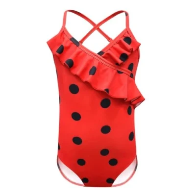 Gorgeous one-piece ladybug swimming costume bathing suit for kids girls. Ladybird polka dots design, red swimsuit all over with digital print black dots. One piece swimwear with ruffle at the V neckline. Sleeveless with adjustable criss-cross straps at back. A simple but cute swim wear to enjoy summer! Made of polyester and spandex materials. Lightweight fabric, comfortable, soft and breathable. Stretchable for easy dressing. Hand wash with cold water, hang dry. Size for toddler and children, age 2-3, 3-4, 4-5, 5-6, 7-8 and 9-10 years. Please measure the actual body size and refer to the size chart to choose a proper size for best fit. An adorable swimming suit, swimwear, beachwear, holiday bathing suit, summer swim wear, poolside party outfit, relaxing swim suit for vacation, swimming class lesson, water activities and beach photoshoot. Also an ideal bathers gift for your daughter, niece and granddaughter.