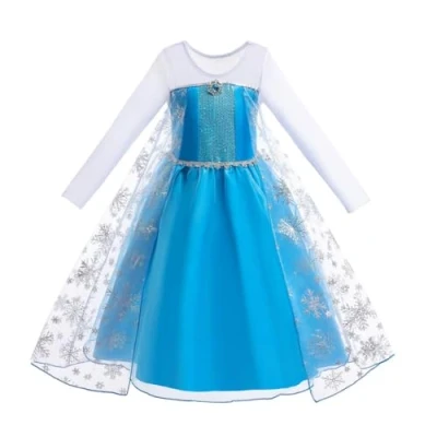 Beautiful one-piece Princess Elsa inspired costume. Made of comfortable material. No itchy! And hand washable! Classical round neck and long sleeves style. Front bodice covered with glittering embellishment. A long train or cape draping from back or chest (depends on which model you have chosen)which makes your girl looks exactly as Princess Elsa., Manufacturer: Lito Angels