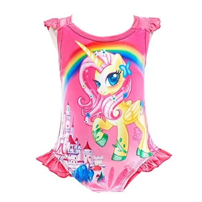 Gorgeous one-piece unicorn swimming costume bathing suit for kids girls. Unicorn swim suit with different design style! Color: Hot Pink / Blue / Purple / Pink. One shoulder ruffle swimsuit or swim dress / one piece swimwear with tulle tutu / ruffle trim on shoulder and at the leg openings. With digital print unicorn, little pony or rainbow patterns, swim skirt style with brief bottom underneath. Made of polyester materials. Lightweight fabric, comfortable, soft and breathable. Stretchable for easy dressing. Hand wash with cold water, hang dry. Size for toddler and children, age 3-4, 4-5, 5-6, 6-7, 7-8 and 9-10 years. Please measure the actual body size and refer to the size chart to choose a proper size for best fit. An adorable swimming suit, relax swimwear, perfect beachwear, holiday bathing suit, summer swim wear, poolside party outfit, relaxing swim suit for vacation, swimming class lesson, water activities and beach photoshoot. Also an ideal bathers gift for your little girl.