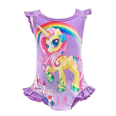 Gorgeous one-piece unicorn swimming costume bathing suit for kids girls. Unicorn swim suit with different design style! Color: Hot Pink / Blue / Purple / Pink. One shoulder ruffle swimsuit or swim dress / one piece swimwear with tulle tutu / ruffle trim on shoulder and at the leg openings. With digital print unicorn, little pony or rainbow patterns, swim skirt style with brief bottom underneath. Made of polyester materials. Lightweight fabric, comfortable, soft and breathable. Stretchable for easy dressing. Hand wash with cold water, hang dry. Size for toddler and children, age 3-4, 4-5, 5-6, 6-7, 7-8 and 9-10 years. Please measure the actual body size and refer to the size chart to choose a proper size for best fit. An adorable swimming suit, relax swimwear, perfect beachwear, holiday bathing suit, summer swim wear, poolside party outfit, relaxing swim suit for vacation, swimming class lesson, water activities and beach photoshoot. Also an ideal bathers gift for your little girl.