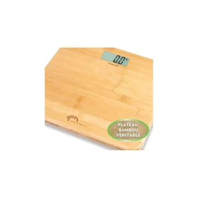 Light natural bamboo design, warm in contact with feet, thick top, bevelled edges and rounded corners for a natural ambience - 300 x 300 mm Capacity: 150 kg / Accuracy: 100 g / Auto-on - Choice of units of measurement (g / kg / lb / oz) Large LCD display for improved readability: 74 x 28 mm Quick start & stop: saves battery energy 5 year warranty