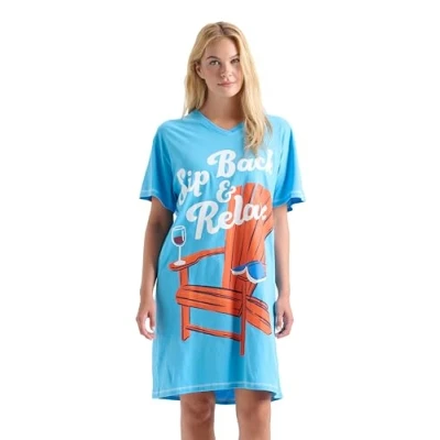 Little Blue House by Hatley Women's Nightshirt Night Shirt, Sip Back and Relax, One Size