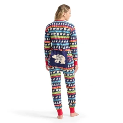 Comfy one piece pajama! The perfect uniform for movie marathons, weekends on the couch and for playful days at home! This is your Christmas vacation uniform! Great design! Our onesie pyjamas are made from a soft 100% cotton and feature contrast ribbed cuffs and functional bum flap. Our union suits have a button placket front. Machine Washable! Made to be worn again and again our union suits will last. We recommend washing in cold water and tumble dry low. Unisex Cut! Women should size one size down from their regular size. The perfect holiday attire for the whole family. Look for matching pyjamas for the whole family! We also make our unisex onesies in kids sizes. Create the perfect Christmas morning photo!