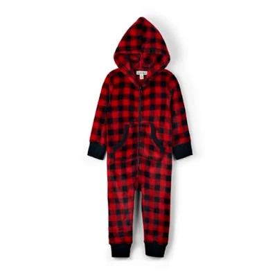 Little Blue House Hatley Women's Hooded Fuzzy Fleece Family Jumpuits Onesie, Red (Kid's Jumpsuit Plaid), One (Size: 2 Years), US7PLAD002